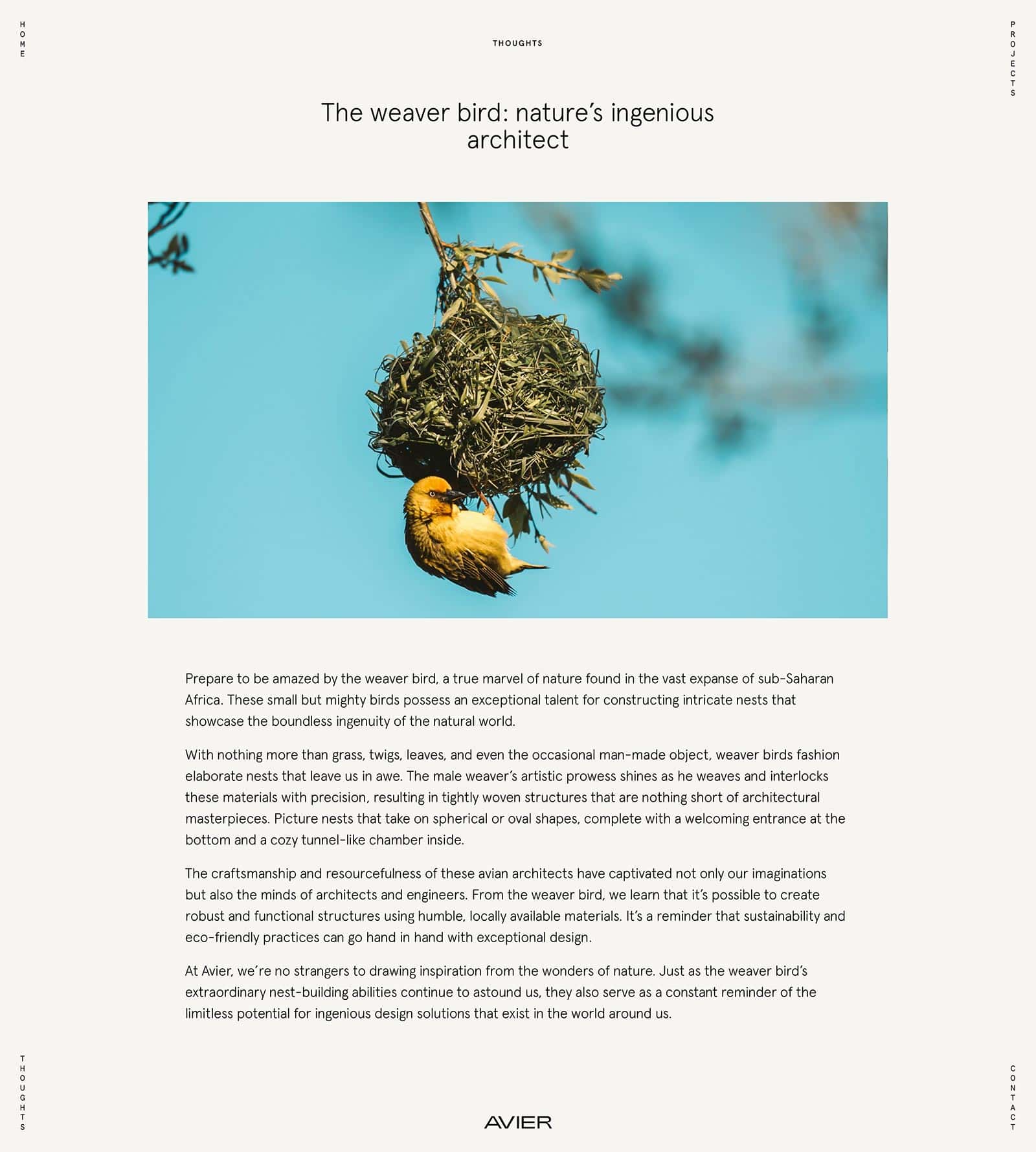 A new-generation property developer who looks to nature for inspiration, we thought a weaver bird embodies this ethos perfectly.