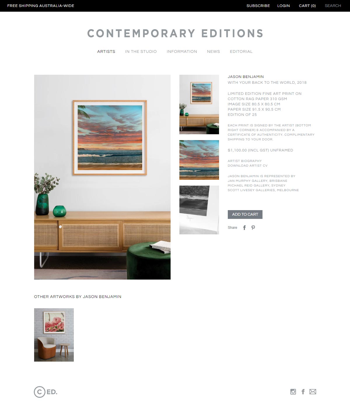 Contemporary Editions is a fine art publisher producing high quality prints by established Australian artists like David Band, Rhys Lee, Kirra Jamison and Michael Muir to name a few.
