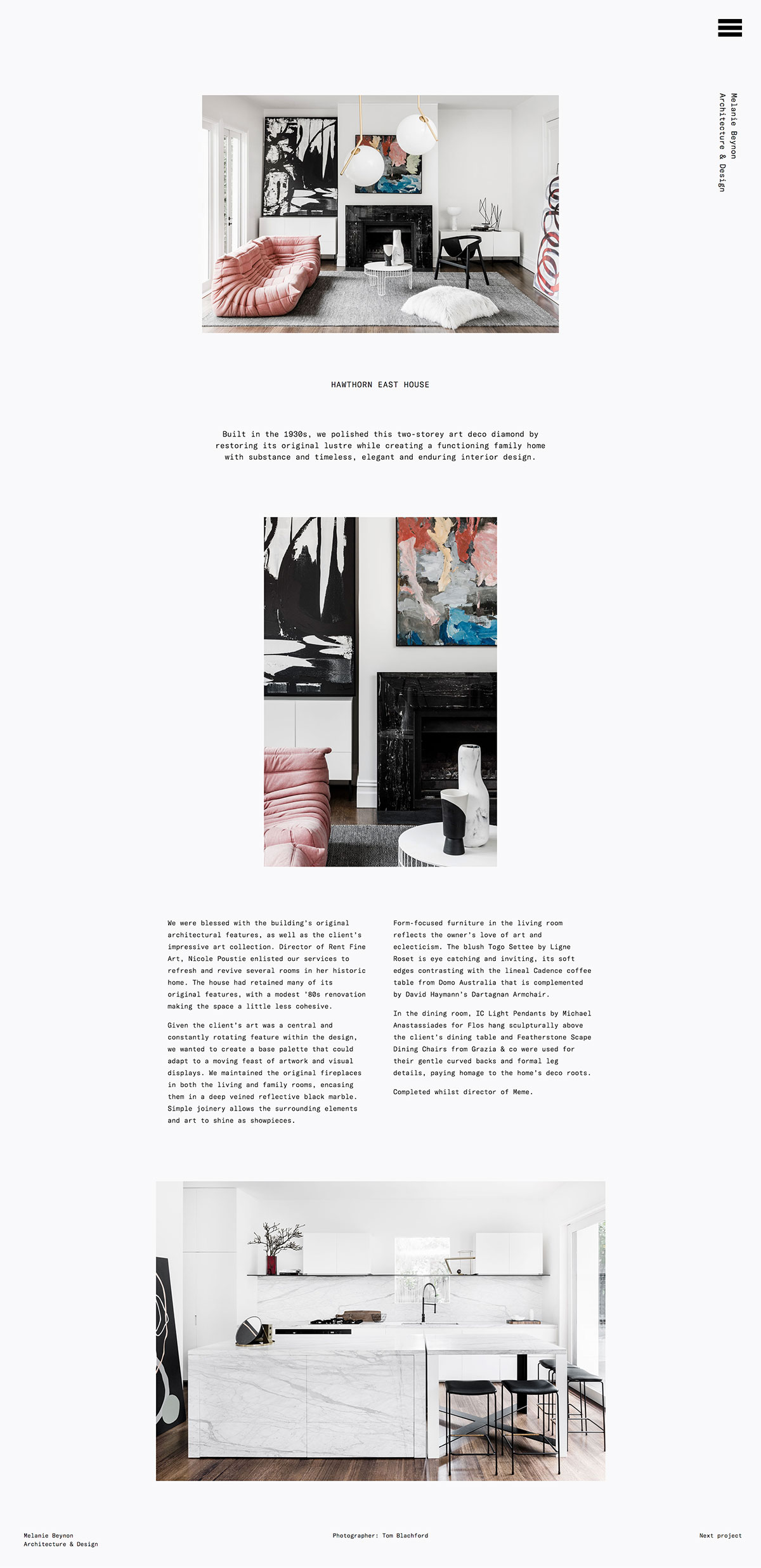 Former partner at Meme Design, this is the new Melbourne based studio of Melanie Beynon.